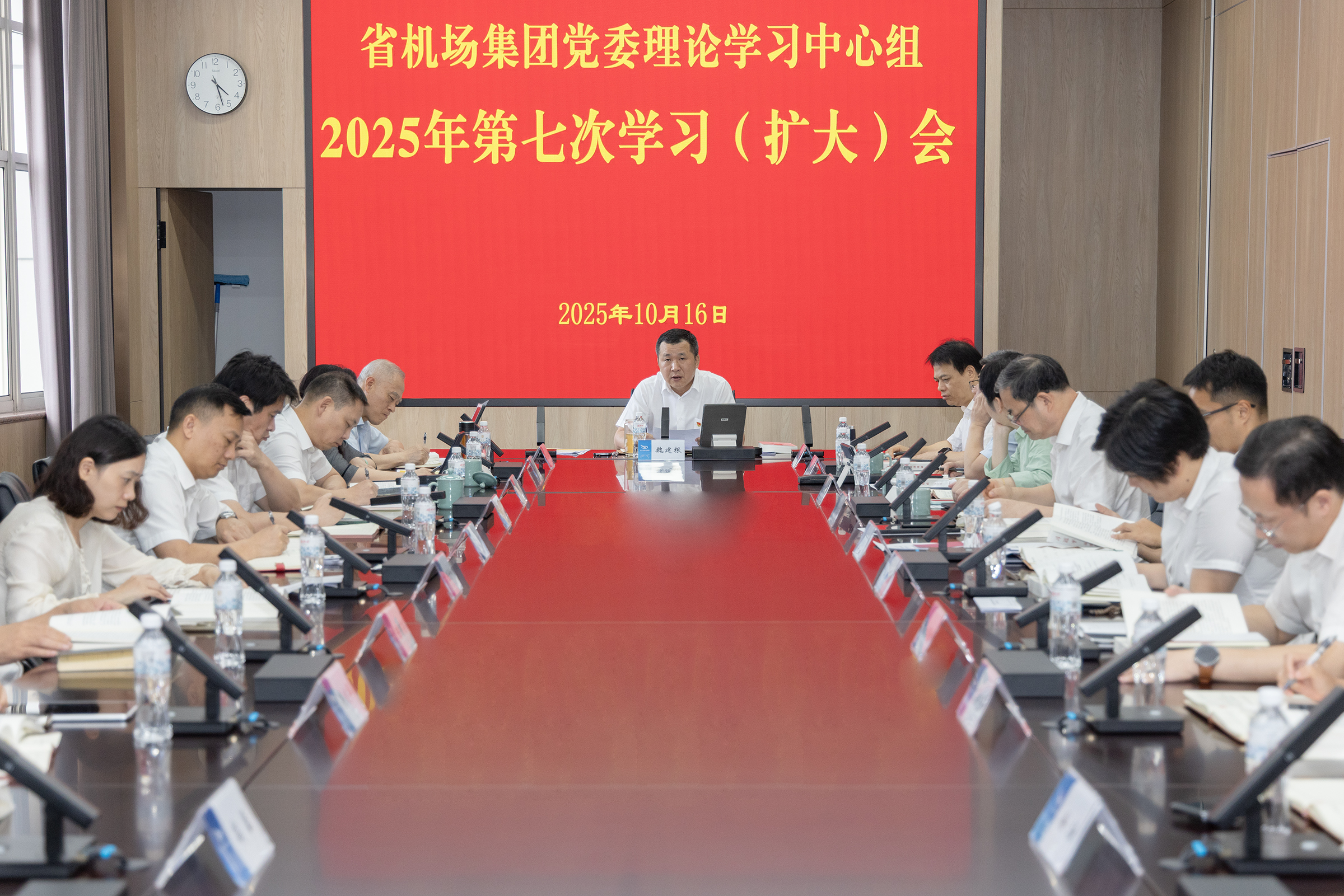 10月16日下午,省机场集团党委理论学习中心组召开2025年第七次学习(扩大)会,集中学习《习近平谈治国理政》第五卷。集团党委书记、董事长魏建根主持会议并讲话,集团党委委员蒋福敏、集团副总经理葛建娟作交流发言。集团党委班子成员参加会议。
