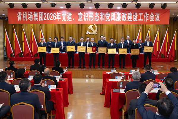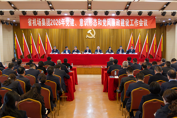 2月28日上午,省机场集团党委召开2026年党建、意识形态和党风廉政建设工作会议,深入学习贯彻习近平总书记关于党的建设的重要思想、关于党的自我革命的重要思想和考察浙江重要讲话精神,全面落实全省“新春第一会”精神,紧扣省委加快打造新时代党建高地的部署要求,总结工作成效,部署重点任务。