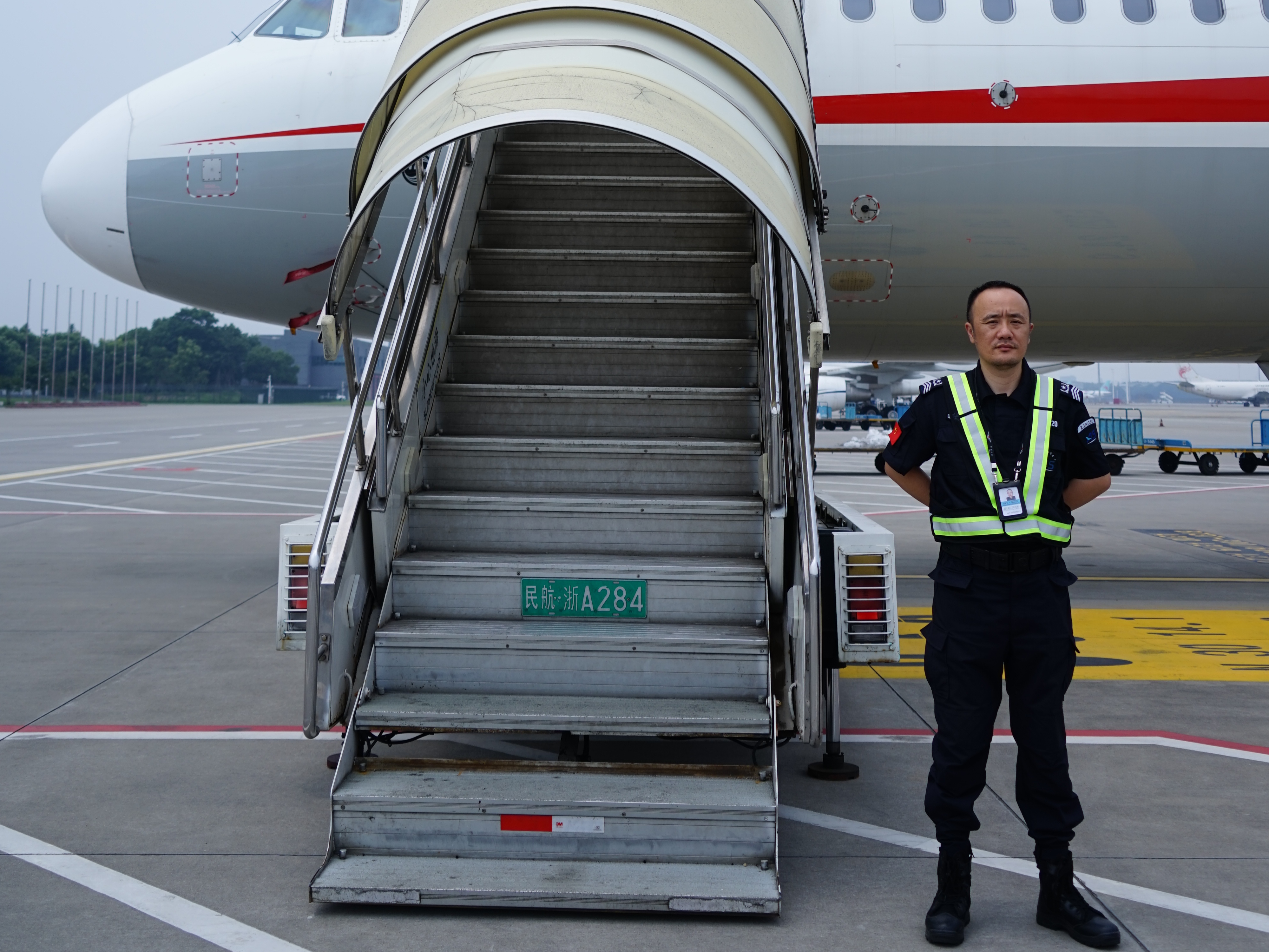 在浙江空港,有这样一群特殊的民航卫士。他们曾是戍边卫士、巡海精兵、空军战将,如今是空港续写荣光的民航人,用忠诚、纪律、过硬作风诠释“退役不褪色、转业不转志”的誓言。在保安公司的员工队伍中,就有110多位退伍军人,他们经历了从“迷彩绿”到“空港蓝”的转变,遍布全省机场,在航站楼值守、飞机监看护、桥载装卸等30余种安保岗位上履职尽责、默默奉献,护航机场安全平稳运行。