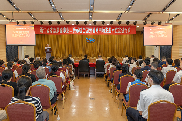 为深入学习贯彻习近平总书记在庆祝中华全国总工会成立100周年暨全国劳动模范和先进工作者表彰大会上的重要讲话精神,持续讲好劳模故事、劳动故事、工匠故事,8月21日,浙江省省部属企事业工会系统全国劳模第四场主题示范宣讲活动在|168开奖历史记录查询结果举行。本场活动由浙江省省部属企事业工会主办,|168开奖历史记录查询结果工会承办。