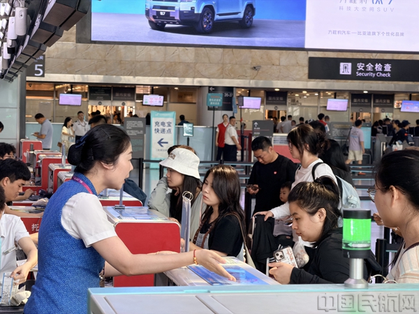 较往年,今年双节假期首次乘机旅客明显增多,为此杭州机场贴心提供“首乘无忧”服务。旅客佩戴上专属爱心手环后,工作人员提供协助登机、安检等服务,方便旅客顺畅出行。对提前申请轮椅服务、无陪服务等特殊旅客,杭州机场还提供全程协助引导服务。