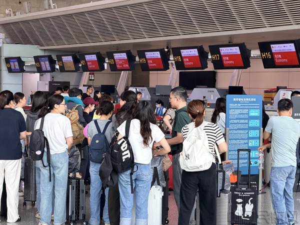 国庆假期,出行目的地主要集中在北京、成都、广州、三亚、香港,以及东京、大阪、首尔、新加坡等城市。为满足旅客多元化出行需求,杭州机场在国庆前夕恢复“杭州—万象”航线,新增“杭州—雅加达”航线,并加密新加坡、吉隆坡等境外热门航线。针对大客流,杭州机场在早晚高峰时段增设值机柜台及安检通道,尽量缩短排队等候时间。同时根据地面交通出行分时流量情况,联动出租车、网约车运营单位,确保高峰期间运力充足。