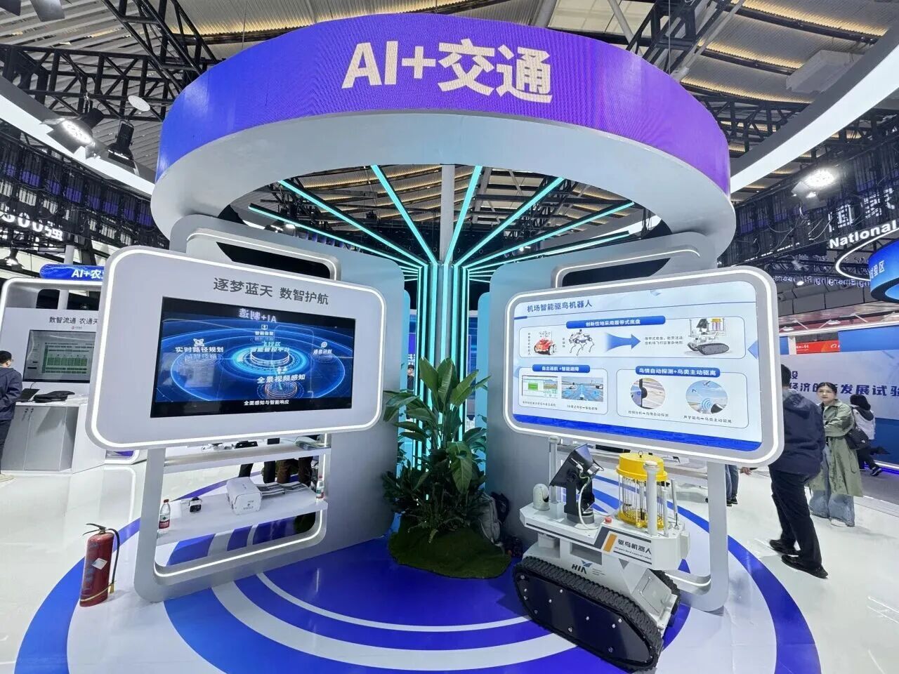 机场智能驱鸟机器人。智能驱鸟机器人集巡检、驱鸟、灭虫与监测于一体,以多重创新构建防护逻辑。