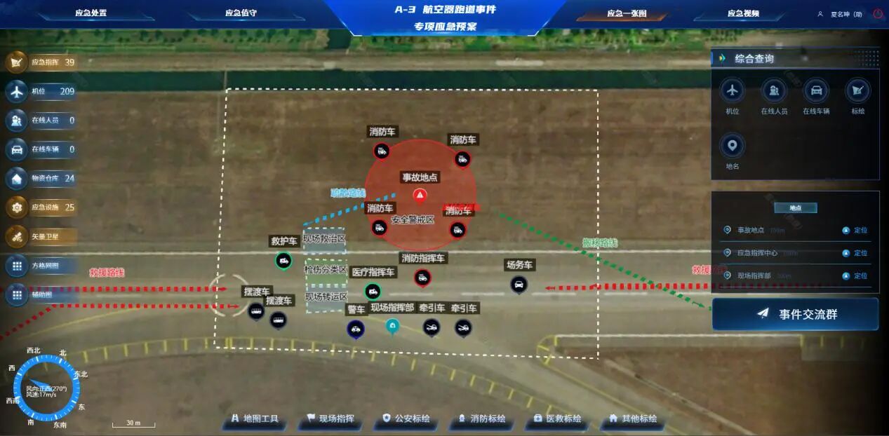 为实现事件处置的“广覆盖、秒应答”,应急系统开发团队建立了覆盖500余项设施设备、救援车辆及应急专家信息的应急资源数据库,并深度对接机场协同决策系统(A-CDM)、公司OA系统,实现航班信息、值班数据一键调取,同时通过关键处置节点图实现应急处置流程绑定,大幅提升资源调配效率。值得一提的是,为方便快捷的进行实时联络调度,新系统实现了电脑端与手机端数据的实时同步,确保后台指挥与现场处置无缝联动。