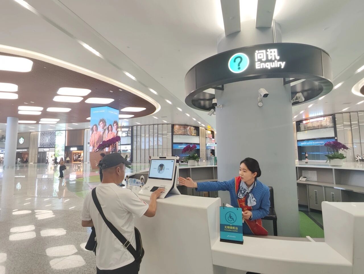 杭州机场联合浙江民航信息科技有限公司研发的软硬件一体化的“慧询一体机”,创新性地采用双屏设计,旅客可通过身份证、登机牌等证件自助查询行程信息并同步显示于工作人员端屏幕,辅助工作人员提供个性化问询服务。该设备自2023年12月起正式在杭州机场各问询台投入使用,投用后至今问询台高峰期排队现象基本清零,问询台旅客投诉率下降38%,特殊群体问询服务时间压缩至2分钟内,实现了服务质量与效率的双提升。