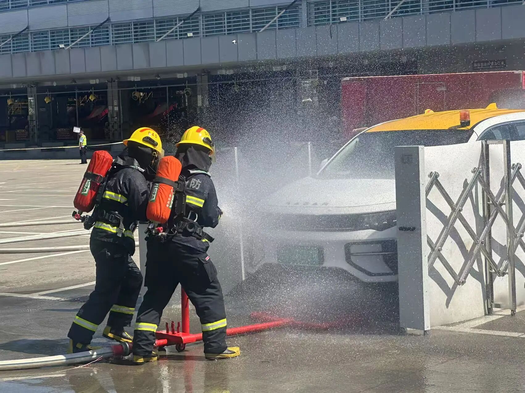 宁波机场在停车场管理中,针对新能源车冒烟起火难灭、高温快速燃爆、灭火毯阻燃降损低效等现实问题,主动联合防火设备企业,积极探寻防控施救方法,科学布设新型防火隔离设施——移动伸缩防火墙,突破了新能源车火灾前期控制难、火势蔓延快的阻燃瓶颈,在新能源车火灾初期,进行高效处置,快速隔温阻燃,控制火情蔓延,有效提升停车 场消防应急处置能力,最大限度地减少火灾损失,最大限度地保护生命财产安全。